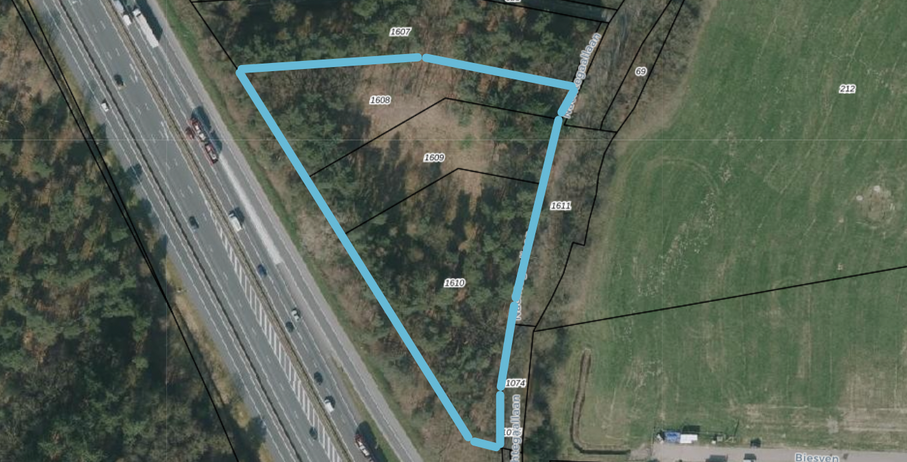 Kavel van circa 3.290 m² waarvan circa 700 m² grondwal/talud te integreren in de achtertuin. Bouwvlak van 468 m², max. inhoud 1.000 m³.